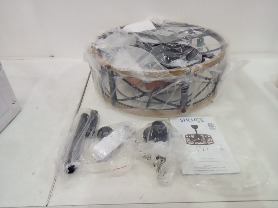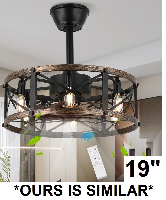 unbranded farmhouse caged Ceiling Fan with 6 Lights & 6 speeds - 19"L - Brown/Black