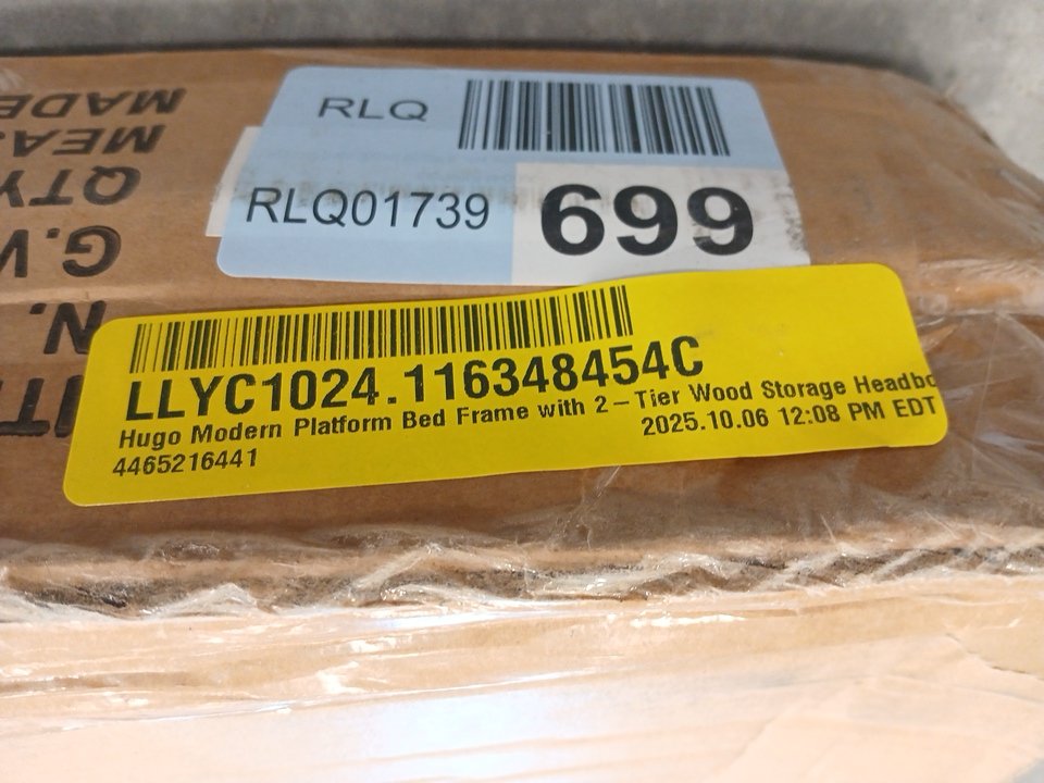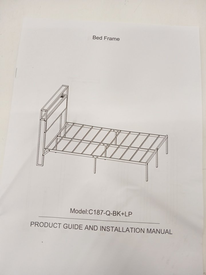 Modern platform bed frame with 2-tier wooden headboard and Hugo charging station - Queen - Brown (Model: C187-Q-BK+LP)