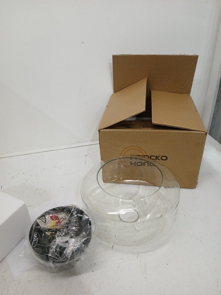 FRIDEKO HOME INDUSTRIAL SEMI FLUSH FARMHOUSE PENDANT CEILING LIGHT FIXTURE WITH CLEAR GLASS SHADE - BLACK/CLEAR