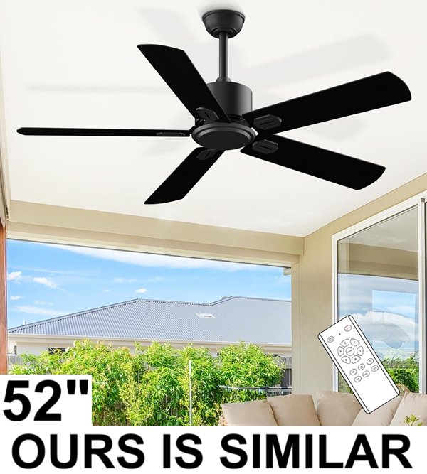 Modern No-Light 5-Blade Ceiling Fan with Remote - 52" - Black