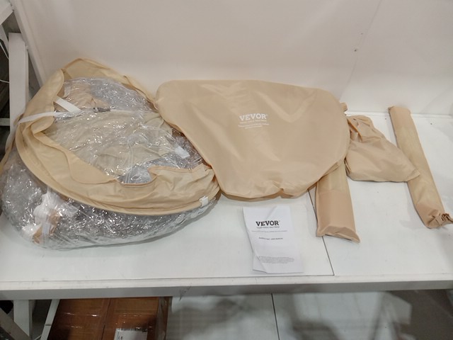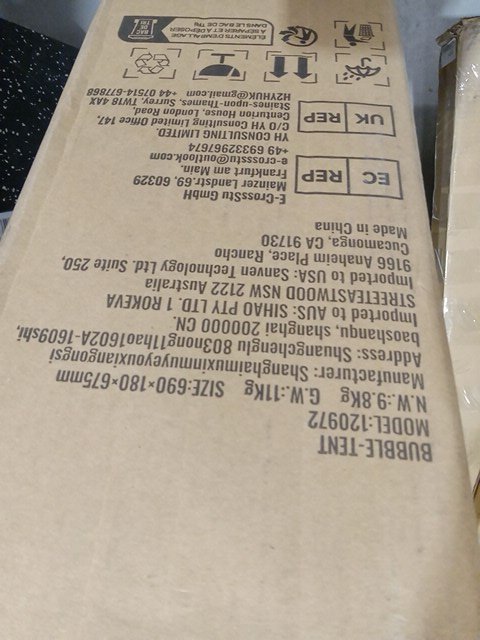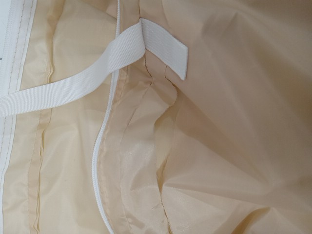 there is some dirt around the opening and on the clear part of the tent . storage bag is ripped.