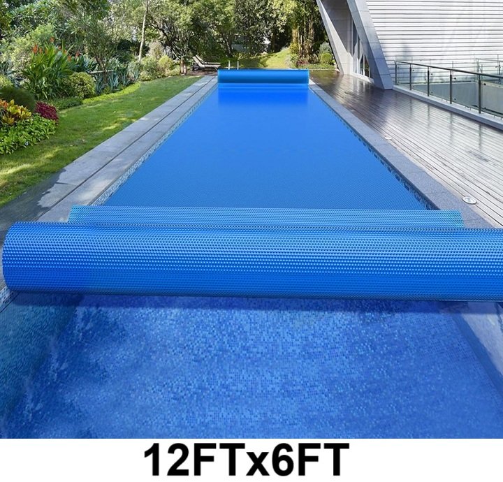 BigXwell 12-Mil Solar Pool Cover with Heavy Duty Blue Insulating Bubble Blanket for In-Ground & Above-Ground Pools, Reduces Evaporation, Saves Energy & Chemical Use, Tear-Resistant Durable Design - 12FT X 6FT - Blue