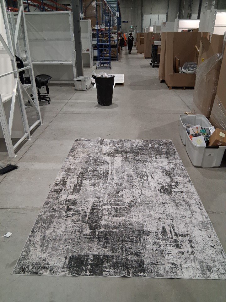 bottom of the mat has some dust residue some light dust on the top of the rug noticeable on the white parts