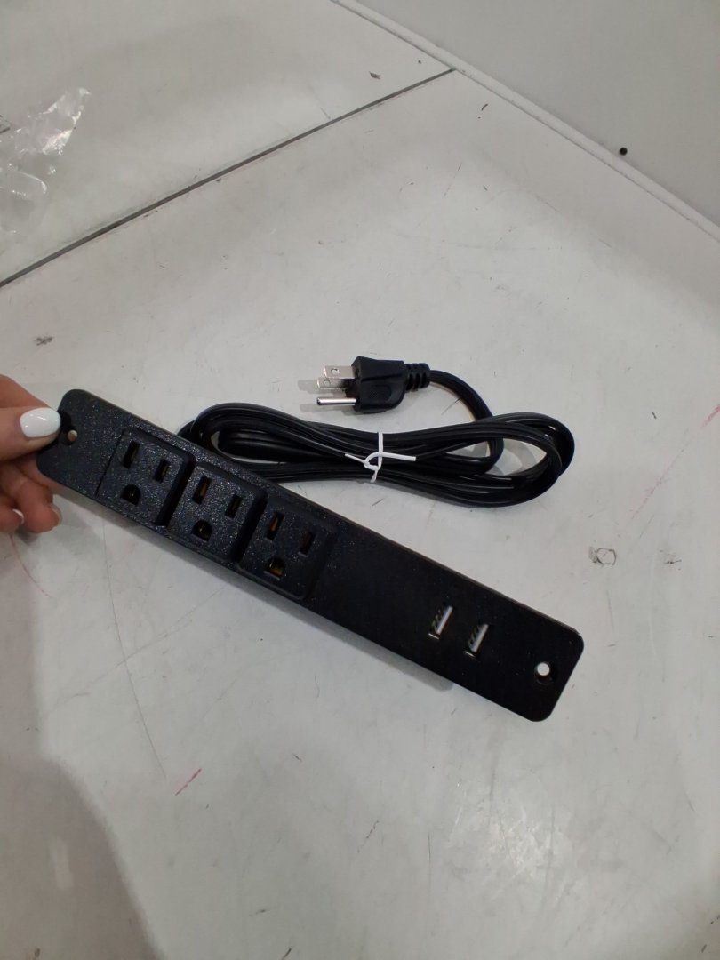 Recessed Power Bar with USB and four strip outlet - black