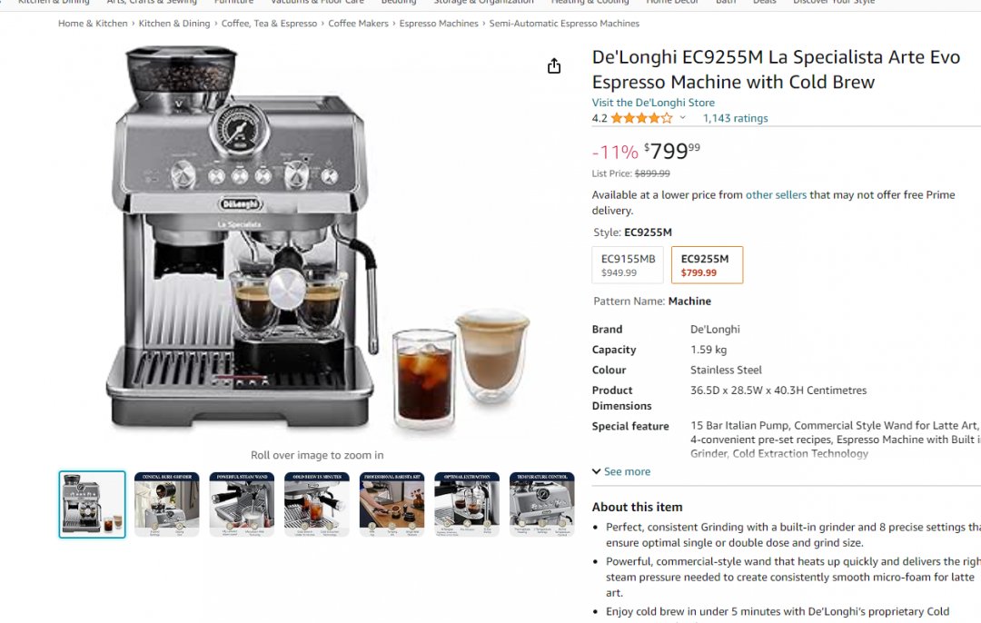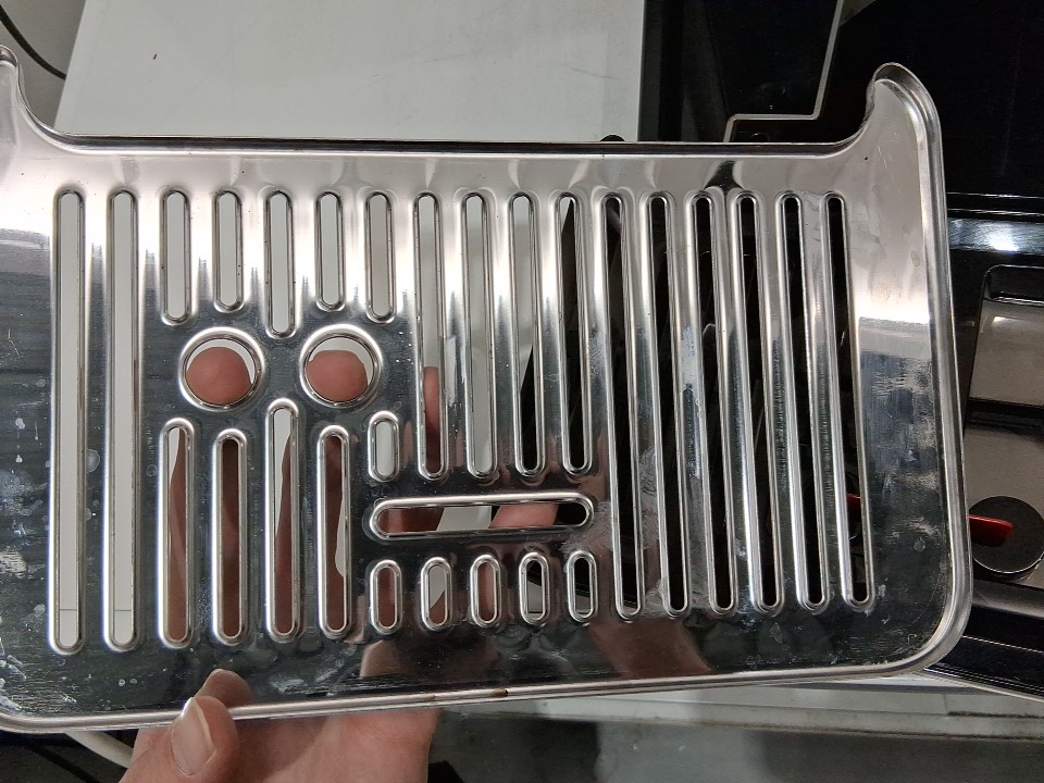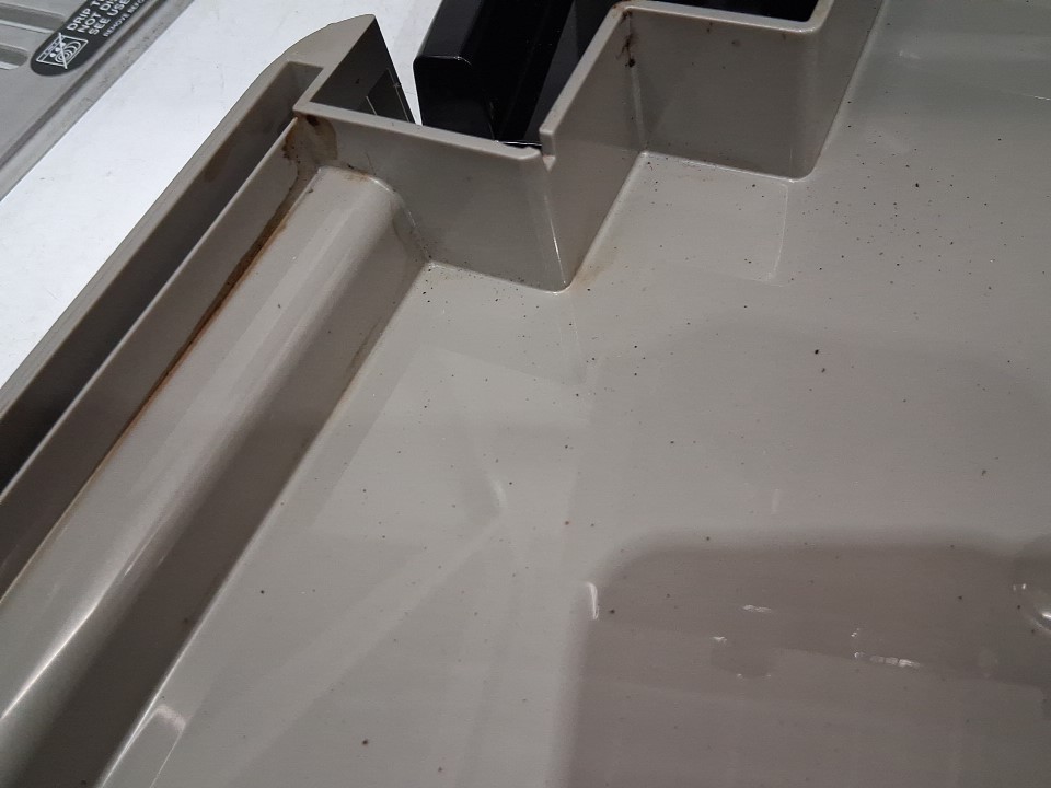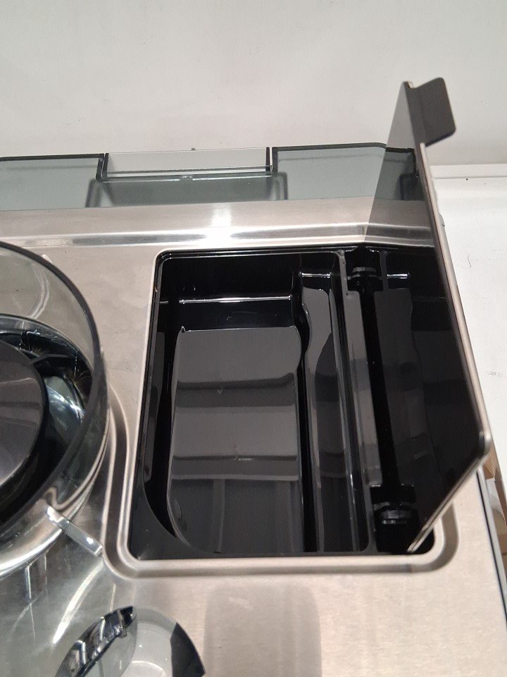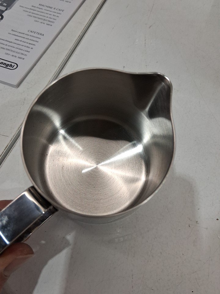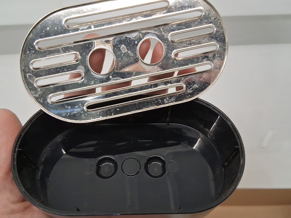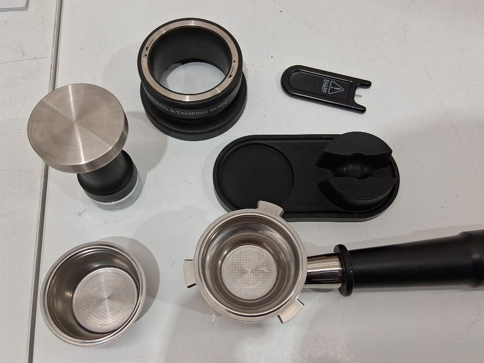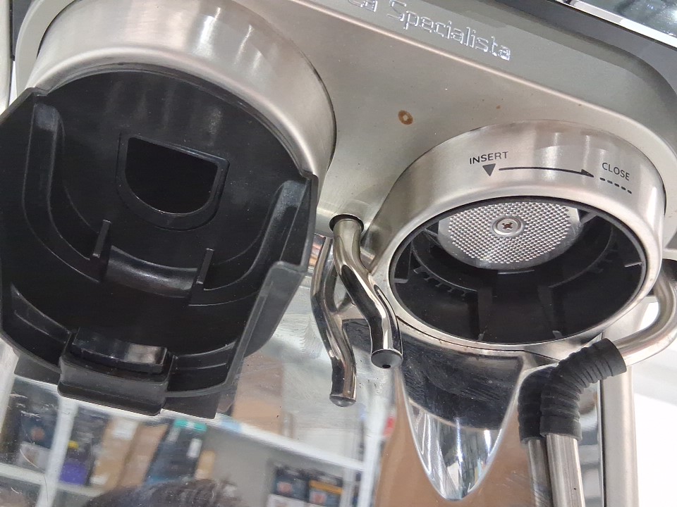 Item has minor residue markings on the small cup grille and drip tray, light coffee stains in crevices under the drip tray, minor markings along the exterior; does not include a cleaning brush, descaling solution, or water hardness test strip from previous gentle use, see photos.