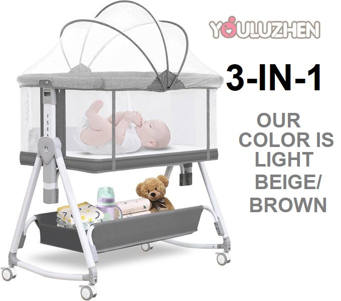 Youluzhen 3-IN-1 Baby Bassinet Bedside Sleeper with Wheels and Mattress - 0-5M - BIEGE/BROWN (MODEL: M001)