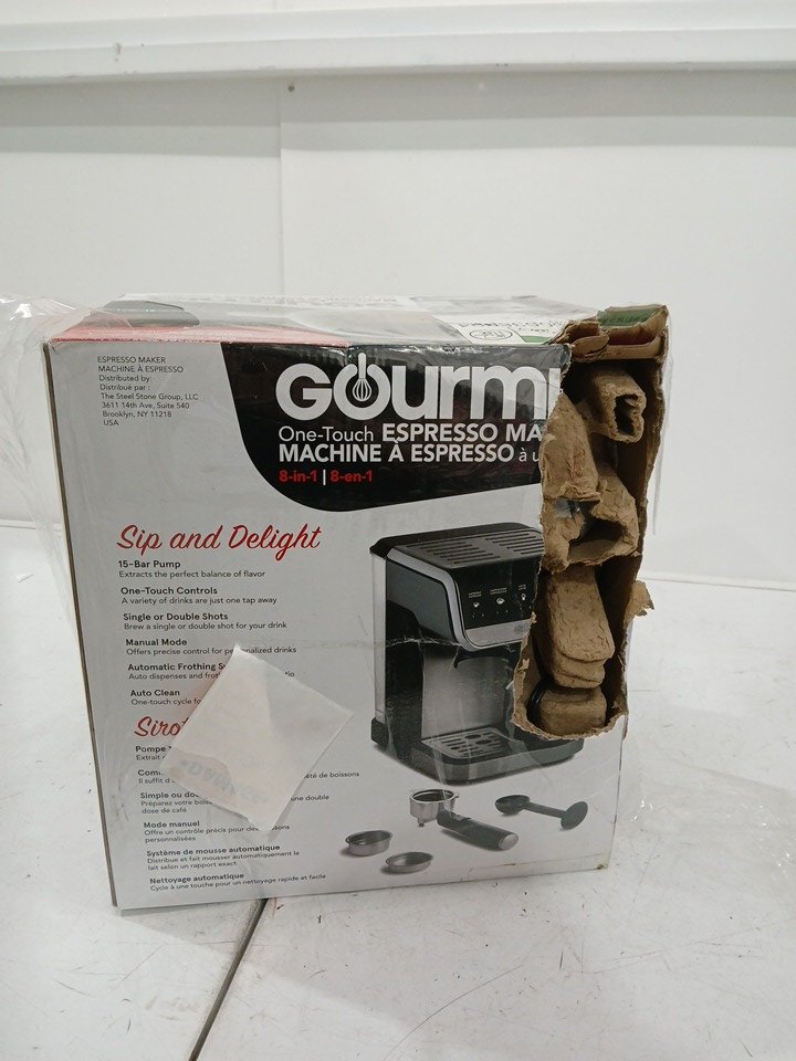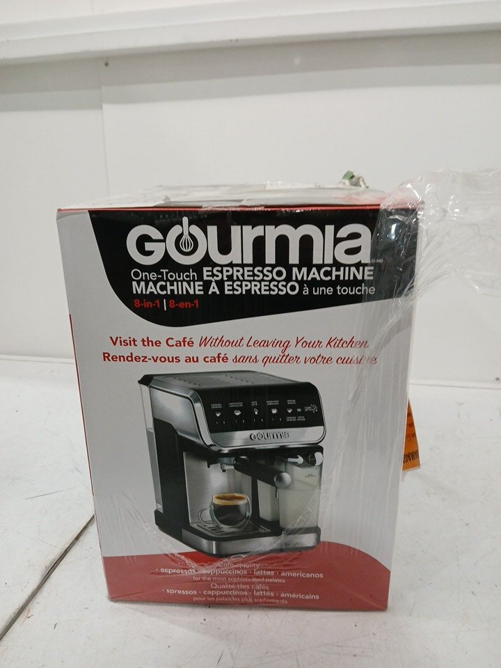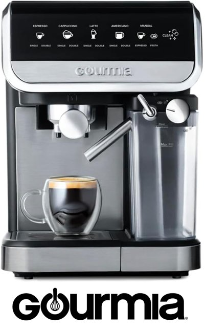 Gourmia 8-in-1 One-Touch Espresso, Cappuccino, Latte & Americano Maker with Automatic Frothing - SILVER BLACK (MODEL:GCM4230)