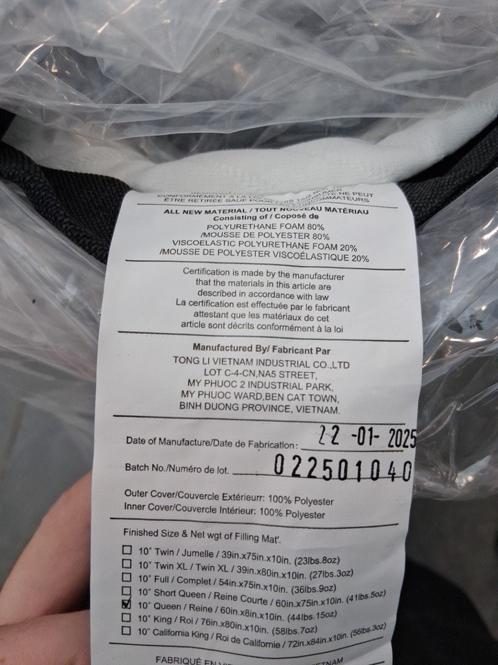 Natulliy Memory Foam Medium Firm Mattress - 10" QUEEN - Black/Grey (MODEL: TLFM)