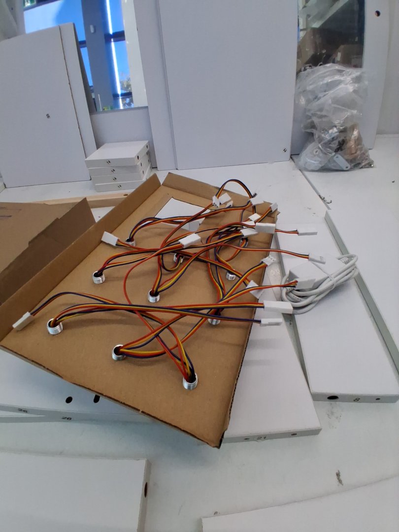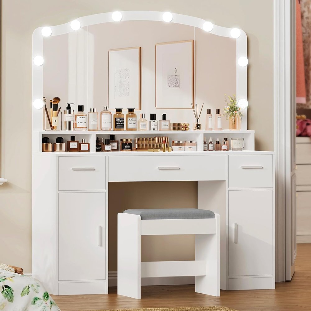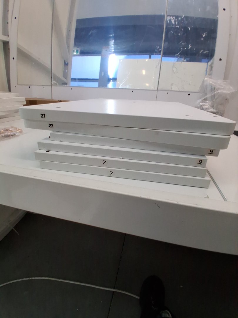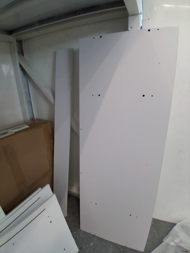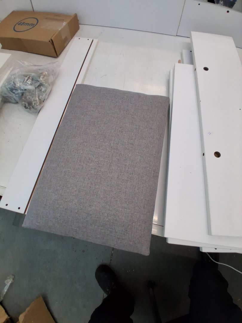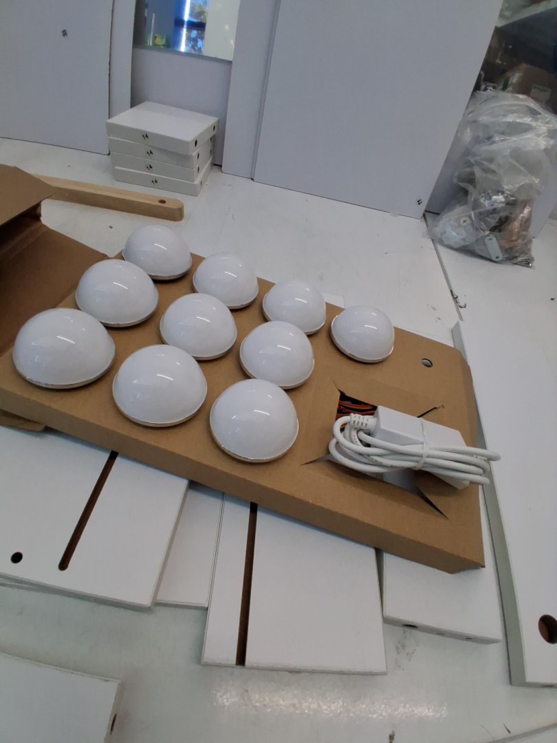Mirror has been briefly inspected and doesn't seem to have any visible scratches behind distressed plastic cover. Missing piece 1 of 2 on piece #8 which is a bottom cover to the vanity. Some hardware like wooden dowels and screws have been attached to pieces, but highly unlikely this set was assembled due to mirror cover still being intact, and hardware bags that are still unopened. Slight wear to some pieces, likely due to poor repackaging. may need hardware.