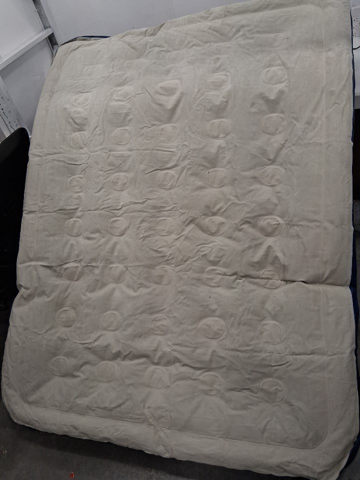 Please note that the pump was tested There is no evident damage on the mattress There is debris and some light stains on the mattress consistent with previous use