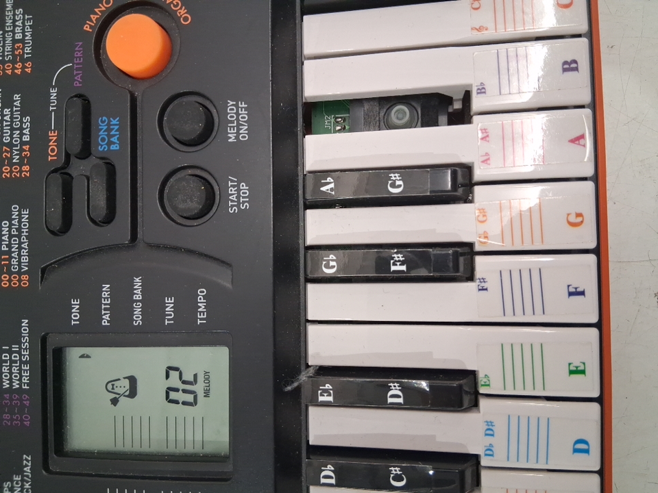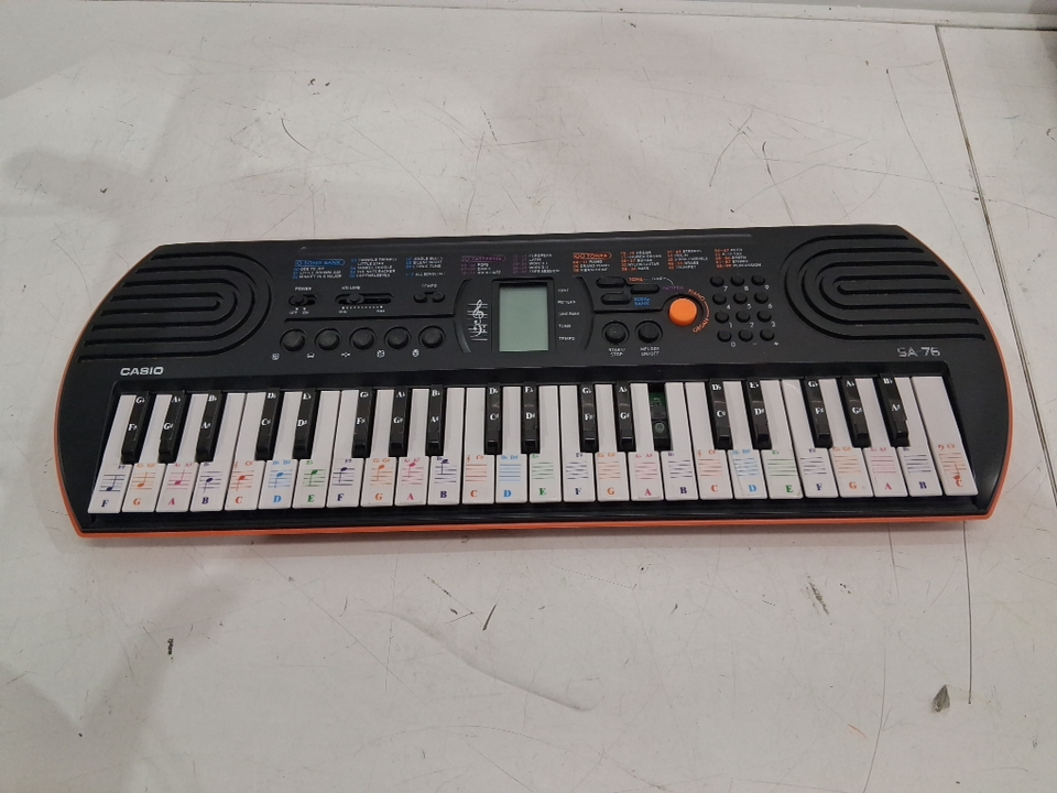 Tested for sound. Please note: • The keyboard shows signs of previous use with stickers added to all the keys, see photos. • One of the keys (A#/B♭) is missing, see photos. • The power cable is missing so the keyboard must be powered using AA batteries.