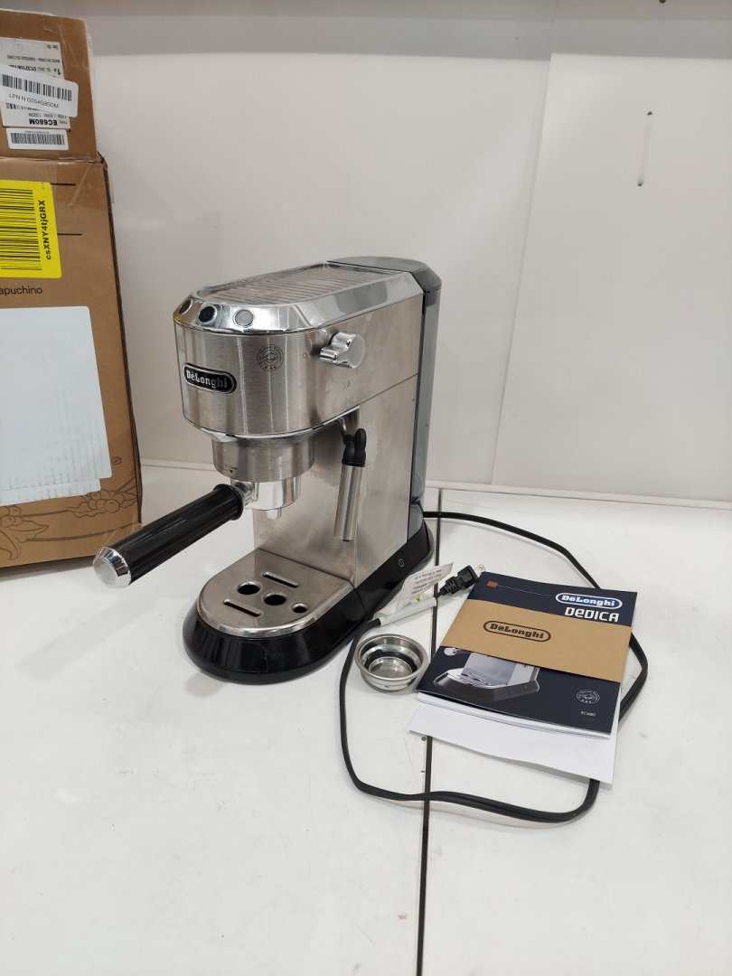 Item arrived with clear signs of significant use. there is dried coffee residue in and on parts of the item but nothing that should effect future use. Additionally this item arrived without the coffee scoop but this is not required for use. The item would likely benefit from a thorough cleaning prior to use. tested for basic power and function.