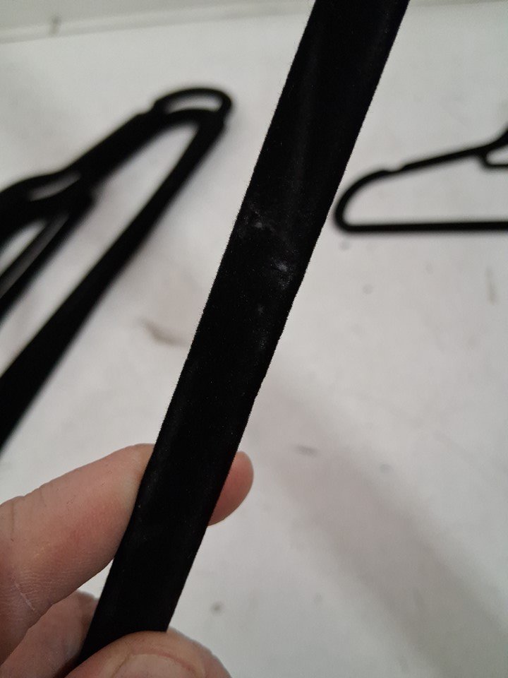 one hangers has some light damage to the velvet surface.