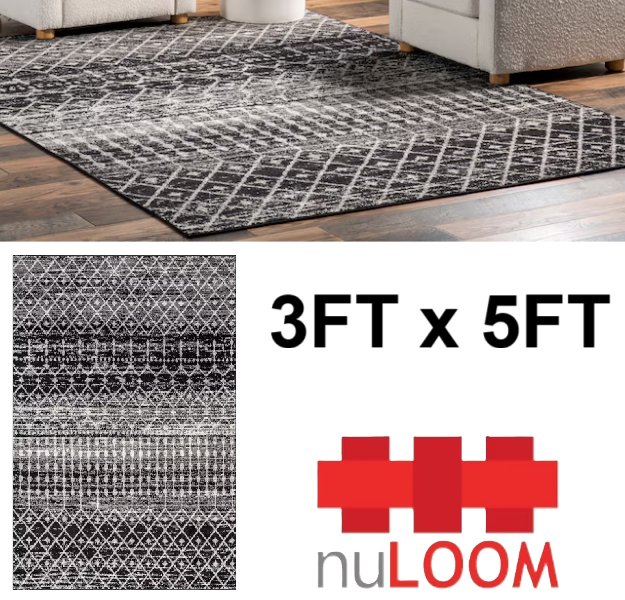 NULOOM BODRUM COLLECTION MOROCCAN BLYTHE RUNNER RUG - 3FT x 5FT - BLACK (MODEL: RZBD16G-305)
