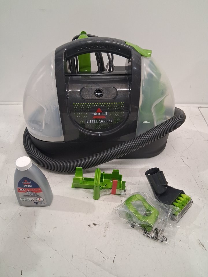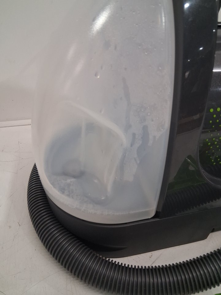 Tested for power. Please note the cleaner shows signs of previous use with some water and cleaner in the tank and the cleaning liquid is almost empty, see photos.