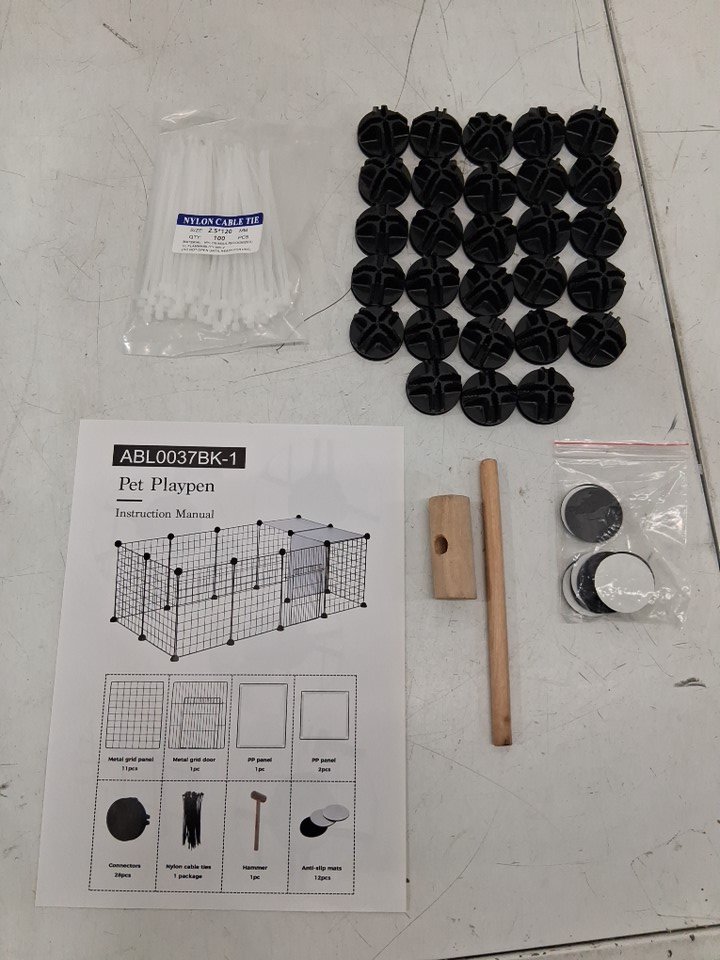 15pc PAWZ ROAD METAL PET PLAYPEN FENCE WITH DOOR - 12" x 16" PER PANEL - BLACK (MODEL: AJ11-ABL0037BK-1)