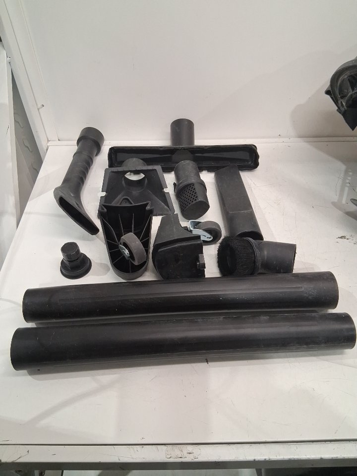 Tested for power. Please note the vacuum shows signs of previous use with dust and debris inside and around the vacuum and pieces.