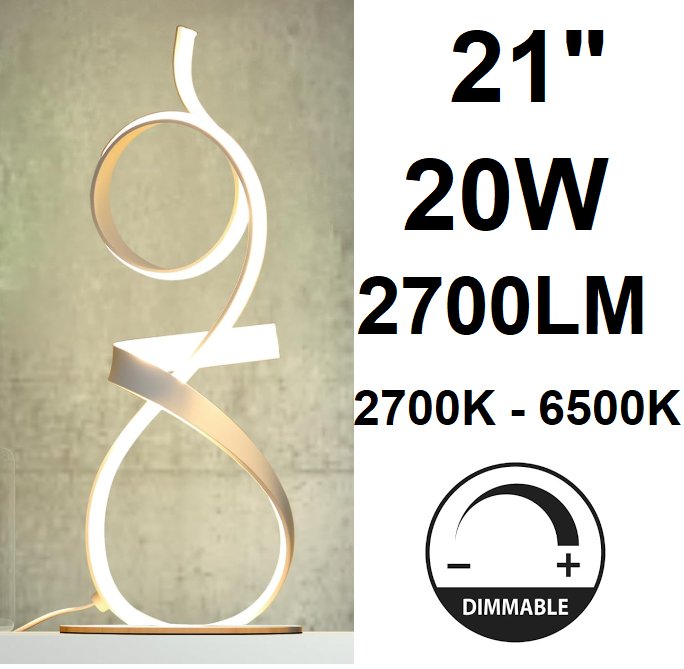 AooLiWang Modern Touch Dimmer LED Table Lamp - 21" - 20w - 2700lm - 2700k to 6500k - white