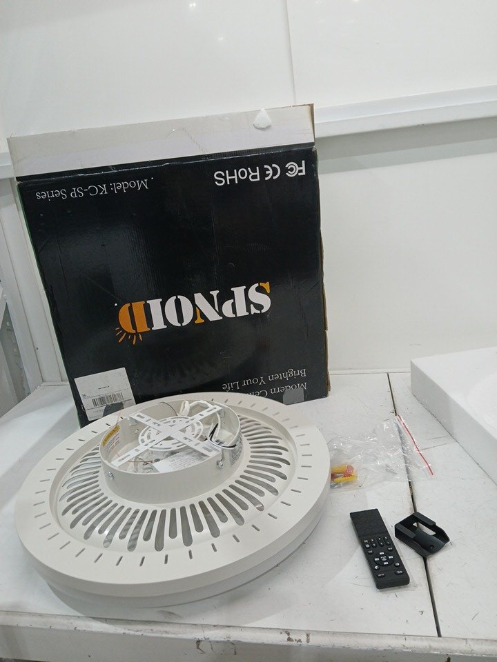 Spnoid Modern Low Profile Ceiling Fan with Dimmable Lights and Remote Control - 3000K-6500K - White/Black (Model: KC-SPN02)