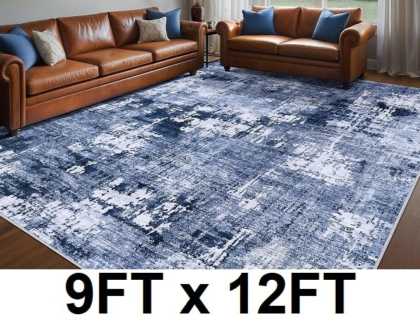 DMOYEST washable modern abstract area rug - 9ft x 12ft - navy blue/white