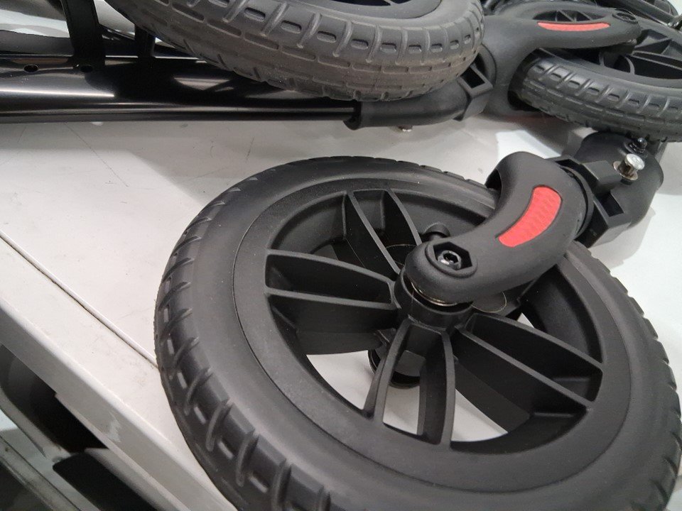 please note the item has some scratches and dirt on the wheels, indicating previous use. see photos.