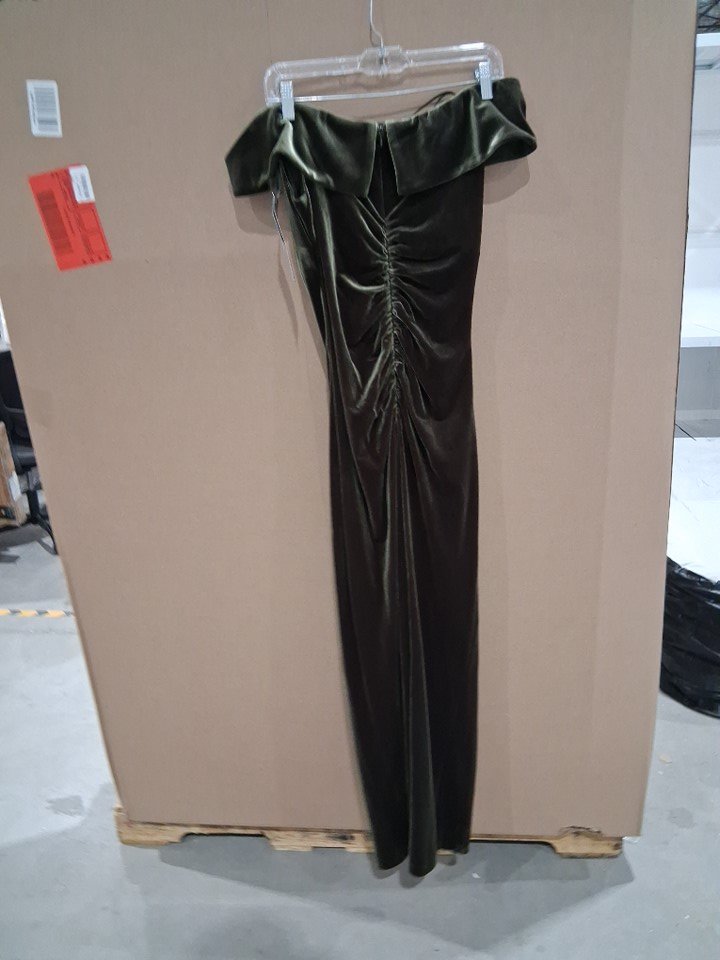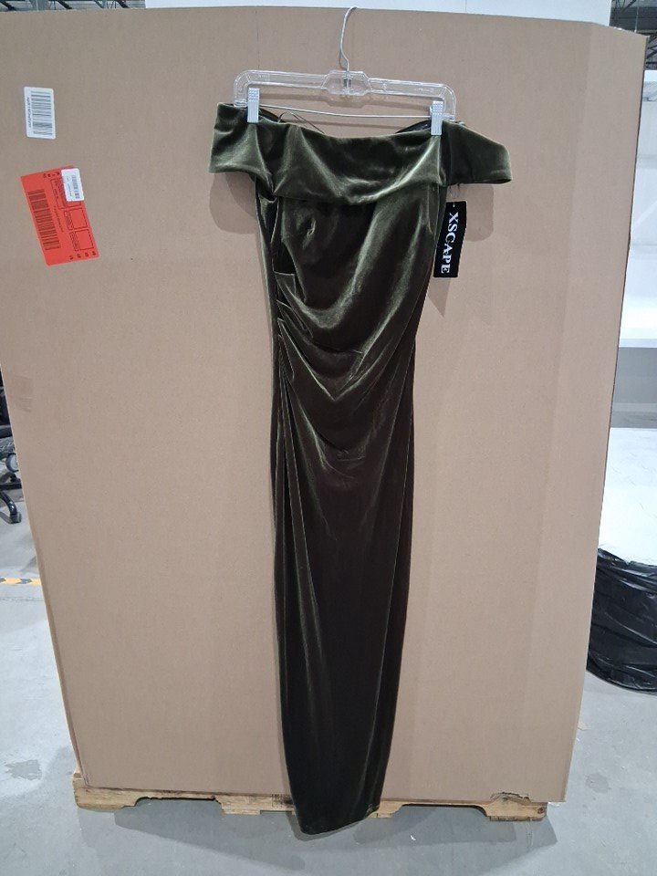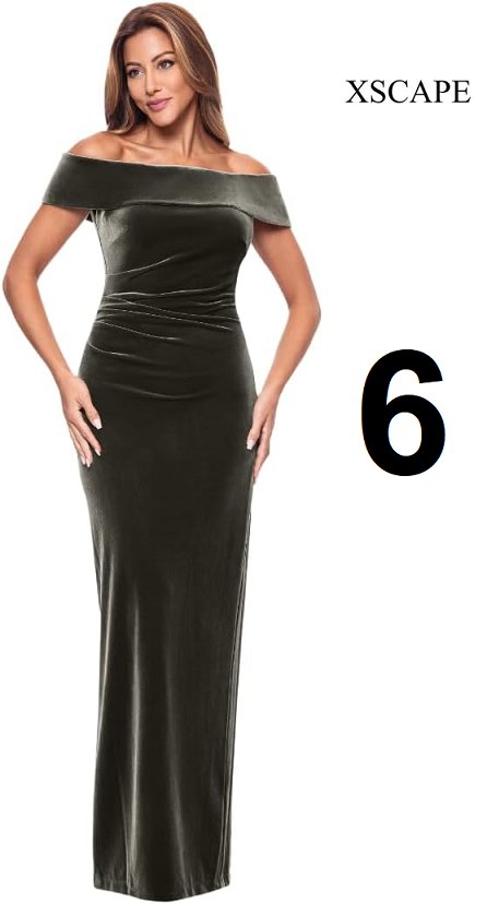 women's Xscape Velvet Off-The-Shoulder Popover Maxi Dress with Zippered Back Closure - 6 - moss - (style:1798x)