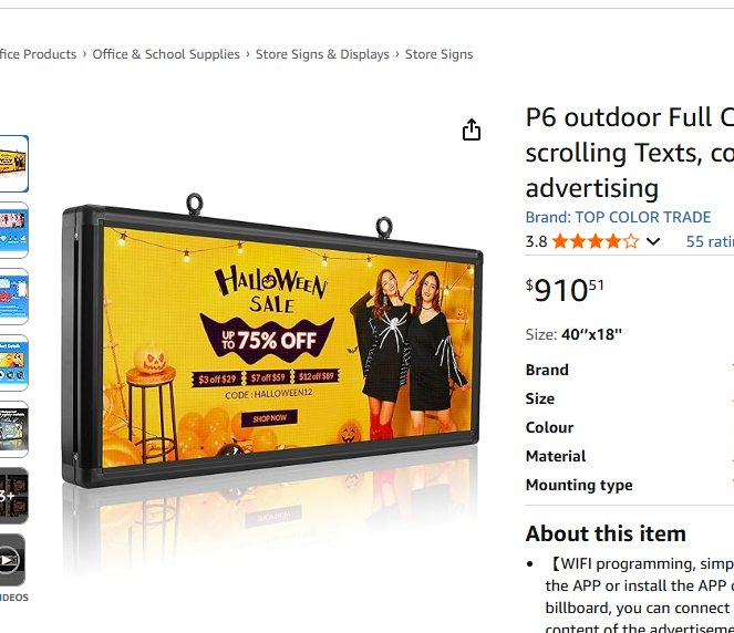 Top color trade P6 outdoor Full Color led sign with High resolution scrolling Texts - 40" x 18"