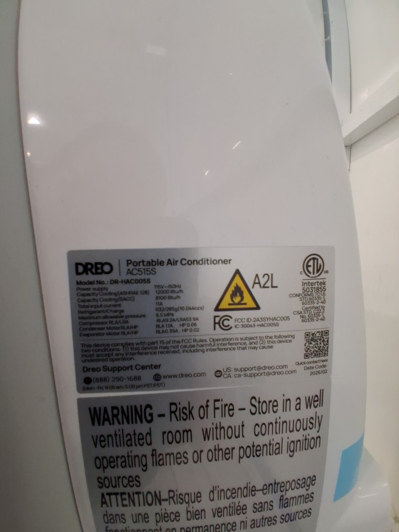 DREO Remote Control Smart Portable Air Conditioner Unit with Drainage-free Cooling, Fan and Dehumidifier - 115V/60HZ - 12000BTU/H - 11A - 14.4" x 17.3" x 28.1" - White (Model: DR-HAC005S)