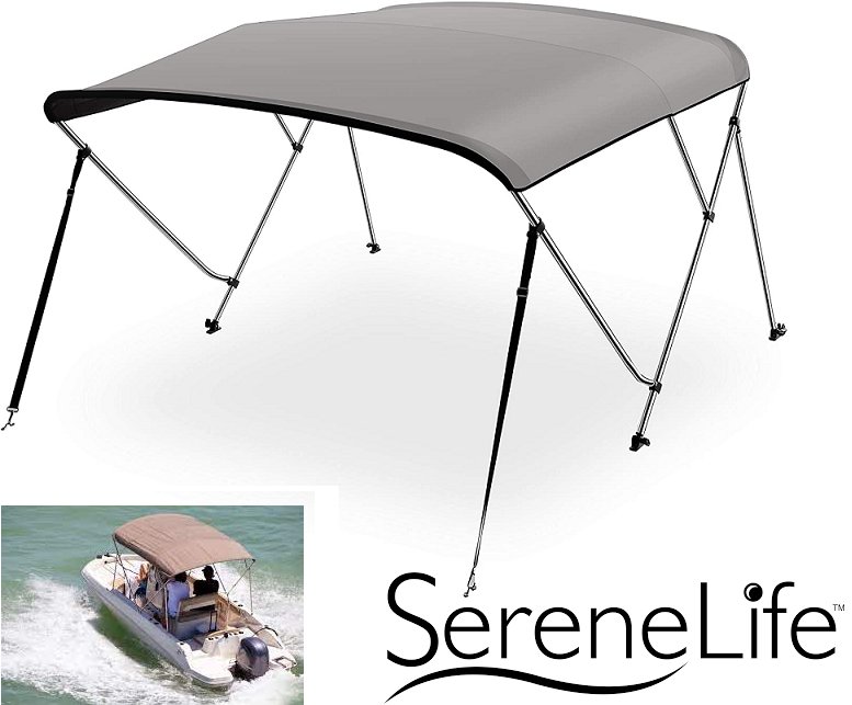 SERENELIFE WATERPROOF BIMINI BOAT TOP COVER, 85"-90" WIDTH, GREY (MODEL: SLBT4GR858)