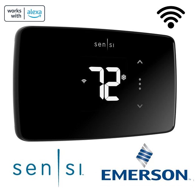 emerson sensi lite smart thermostat - works with alexa - black (model: st25)