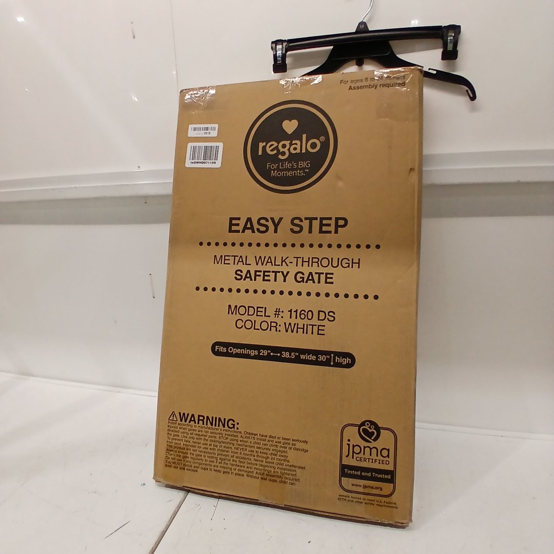 REGALO EASY-STEP METAL WALK-THROUGH SAFETY GATE - 30" x 29'' to 38.5'' - WHITE (MODEL: 1160DS)