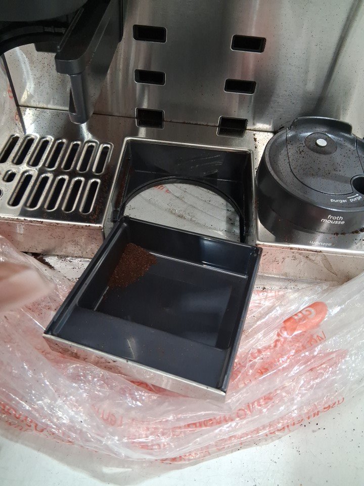 Item has coffee residue inside and water marks from previous use. It has been tested for power.