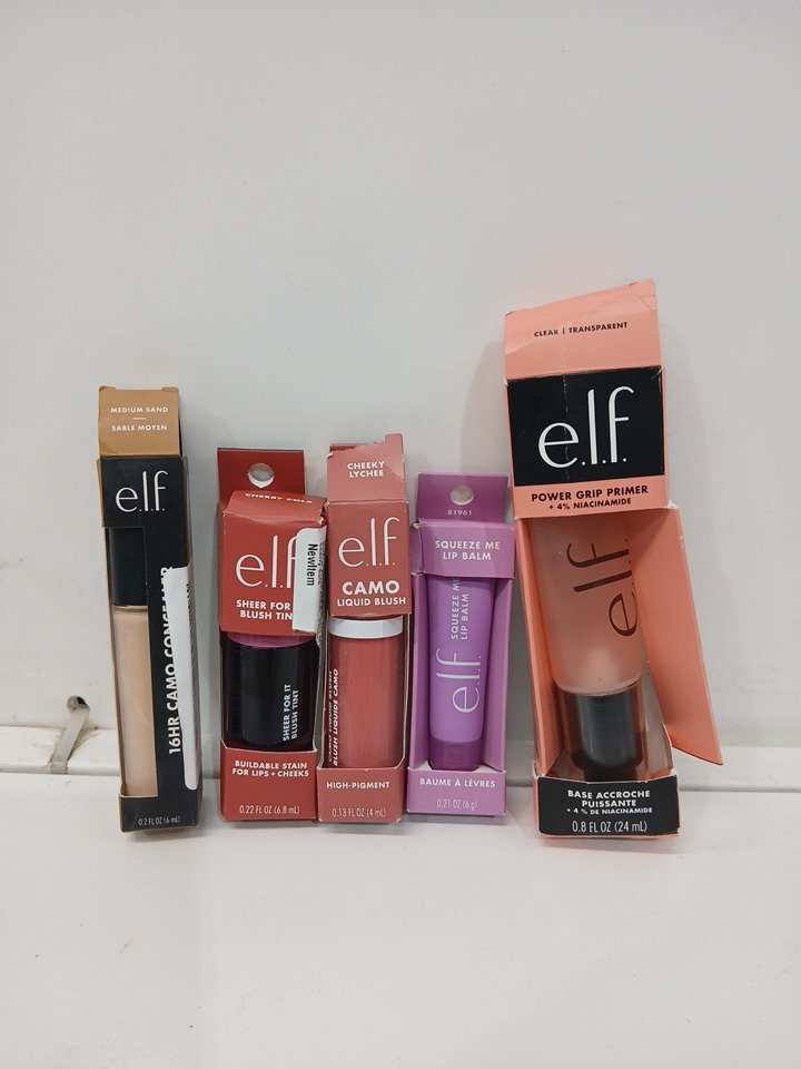 5 ASSORTED E.L.F. PRODUCTS- ASSORTED COLORS AND TYPES
