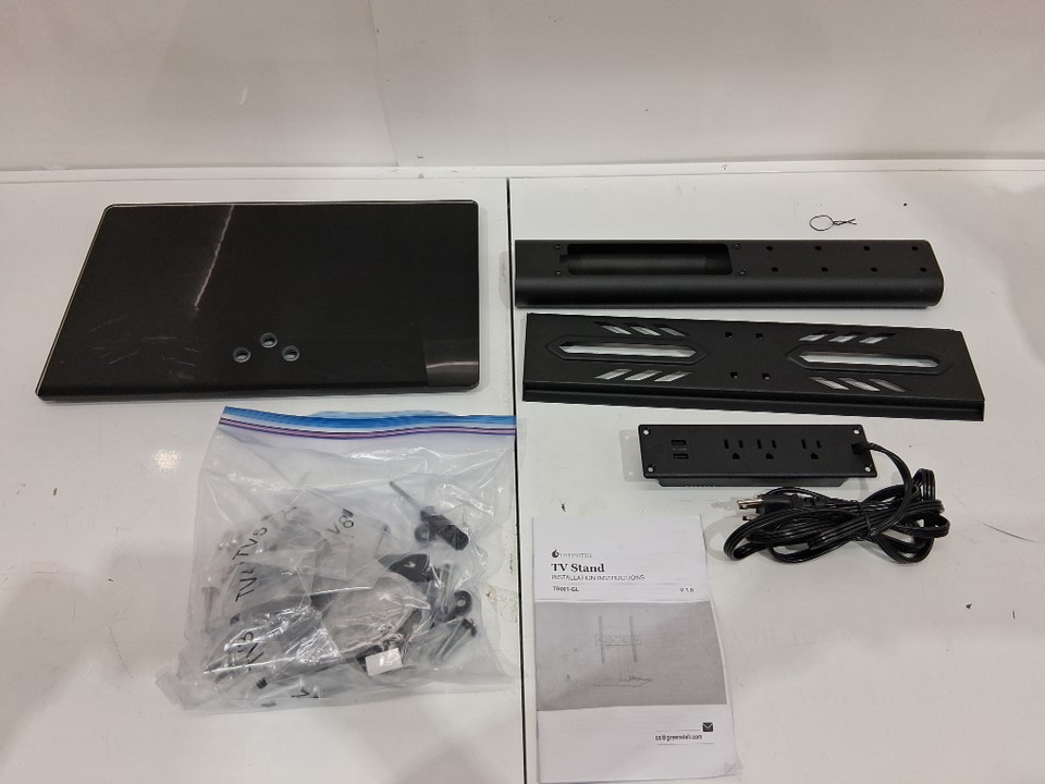 GREENSTELL HEIGHT ADJUSTABLE FLOOR TV MOUNT STAND WITH POWER OUTLETS - FITS MOST 32"-55" TVS - BLACK (MODEL: TS001-GL)