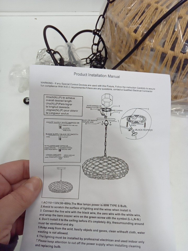 Stepeak Farmhouse Rattan Pendant 4-light - 16" - rattan