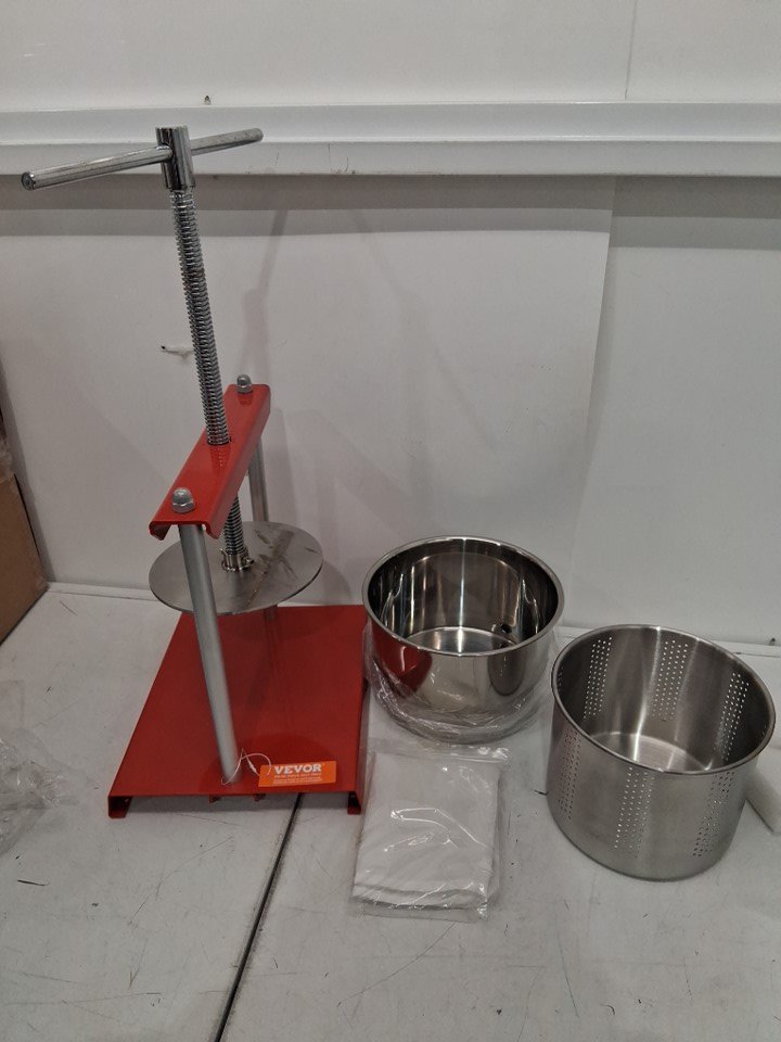 Juicer looks unused as stainless steal bowl, strainer and press look clean, however top of press has oil and debris stuck to it