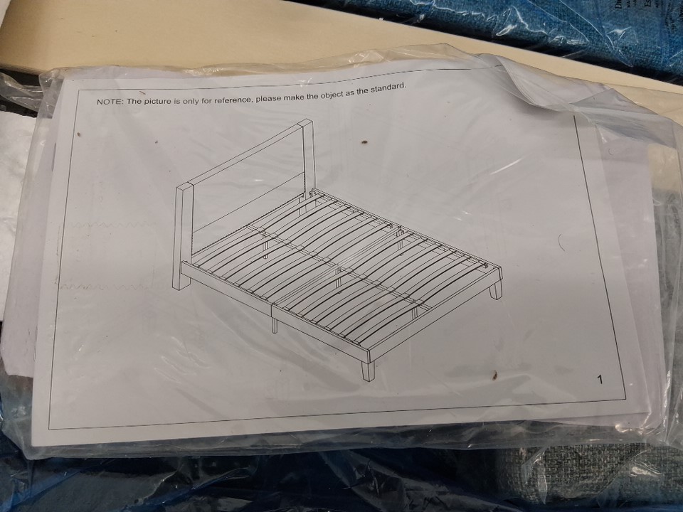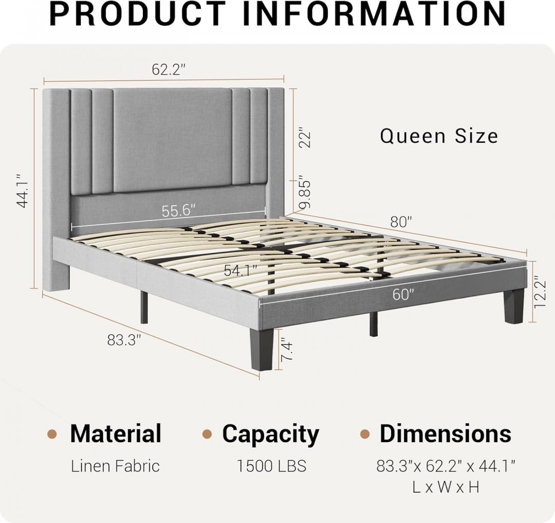 dummup upholstered linen bed frame with headboard and wooden slats - queen - light gray - (model: y0100500)