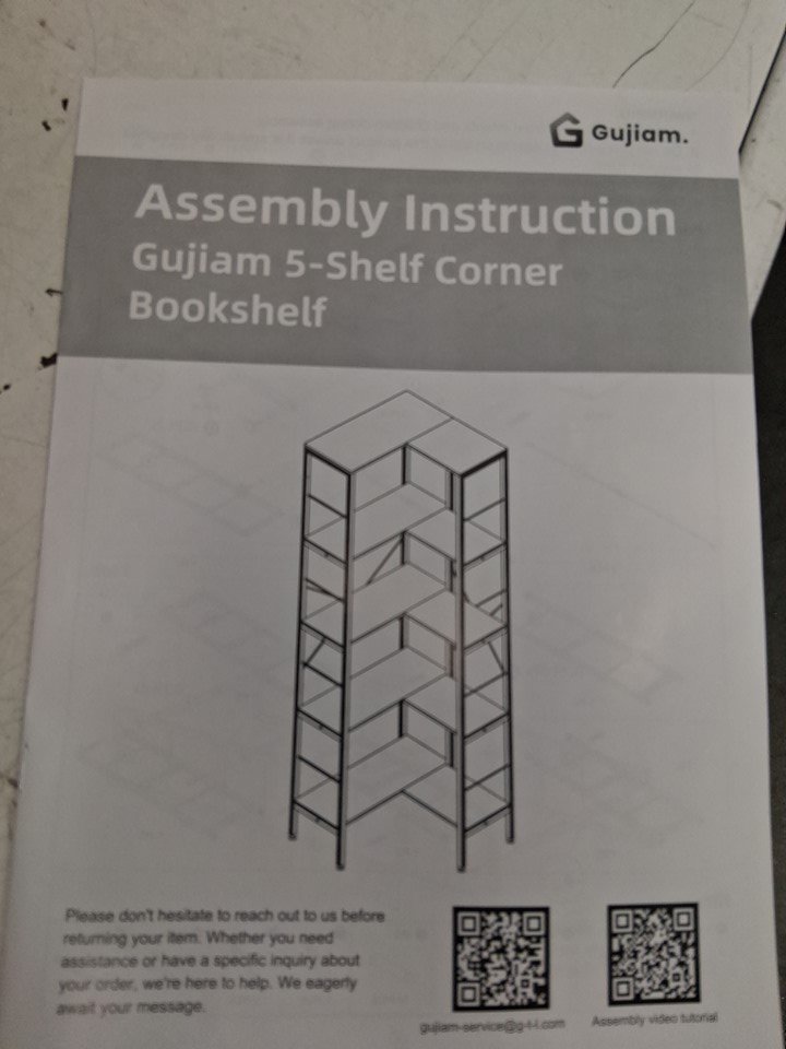 Gujiam 5-Tier Industrial Corner Bookshelf with Durable Metal Frame, Rustic Wood Shelves, Open Shelving Reinforced Crossbar Support and Adjustable Foot Pads - Gold / White (Model: 2BS8045-5)