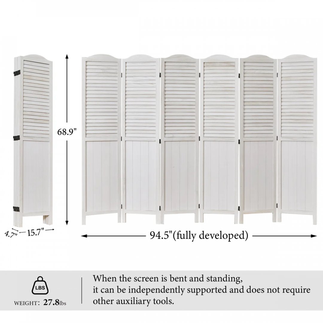 Gracie Oaks solid wood folding louvre privacy screen partition room divider - 94.5" - white