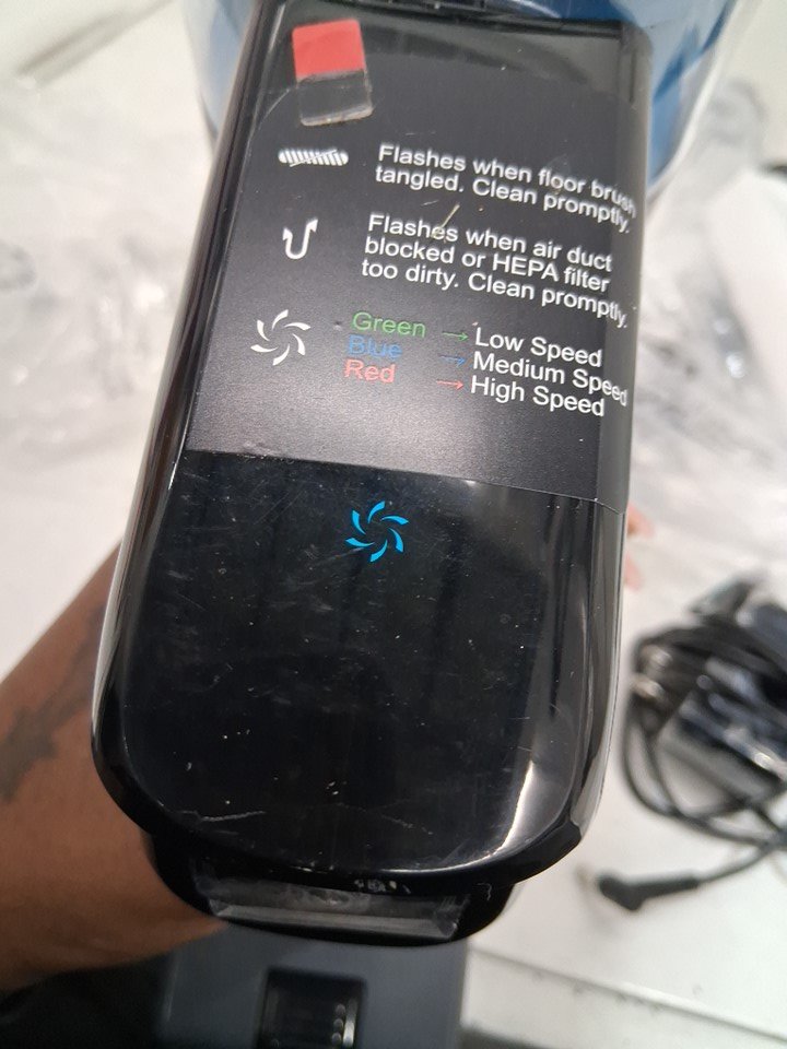 The item has dirt in the canister, and the rollers show signs of prior use with visible dirt. It has been tested for power. See photos.