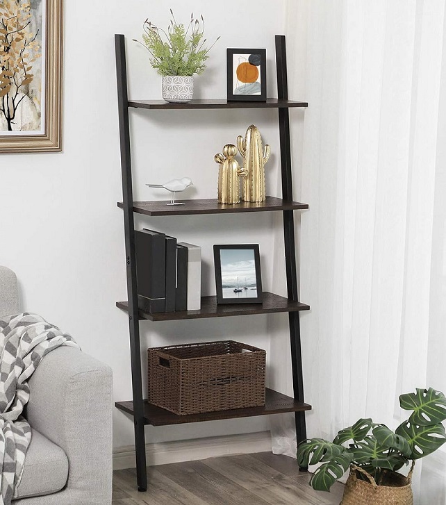 VASAGLE 4-Tier LADDER Bookshelf - 25" x 14" x 59" - DARK BROWN (model: lls43BF)
