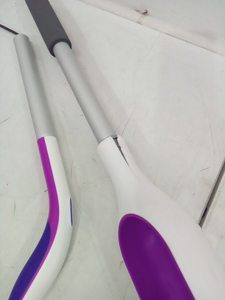 the plastic is cracked on the base, and there is major dirt and scuffs on the item from being used, see photos please.