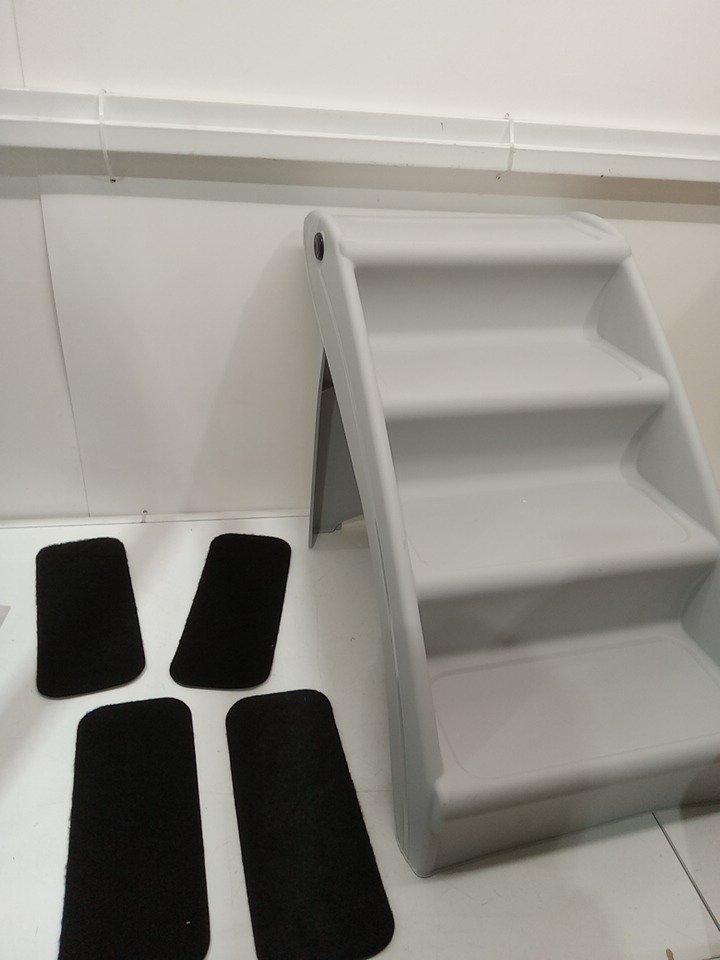 Carpet pads have been previously stuck but could be used again with another sticky pad or DIY solution.