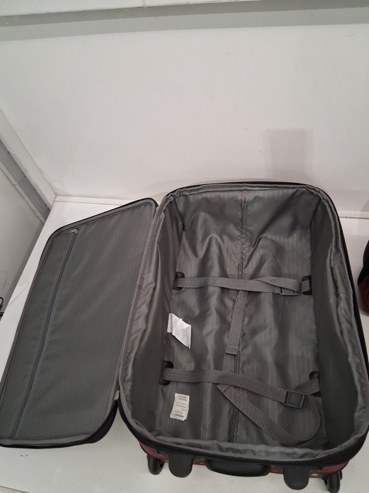 the carry one has scratches on the wheels from previous use the tote bag appears new