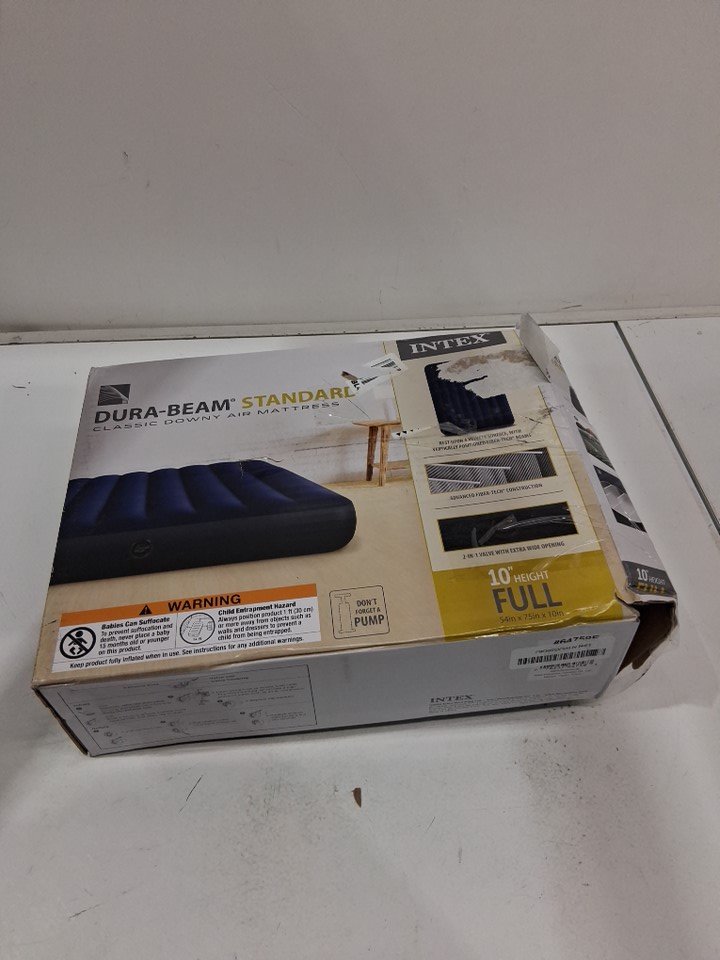 INTEX DURABEAM STANDARD DOWNY AIR MATTRESS WITH 300LB WEIGHT CAPACITY - 10" full - blue/GREY (MODEL: 64758E)