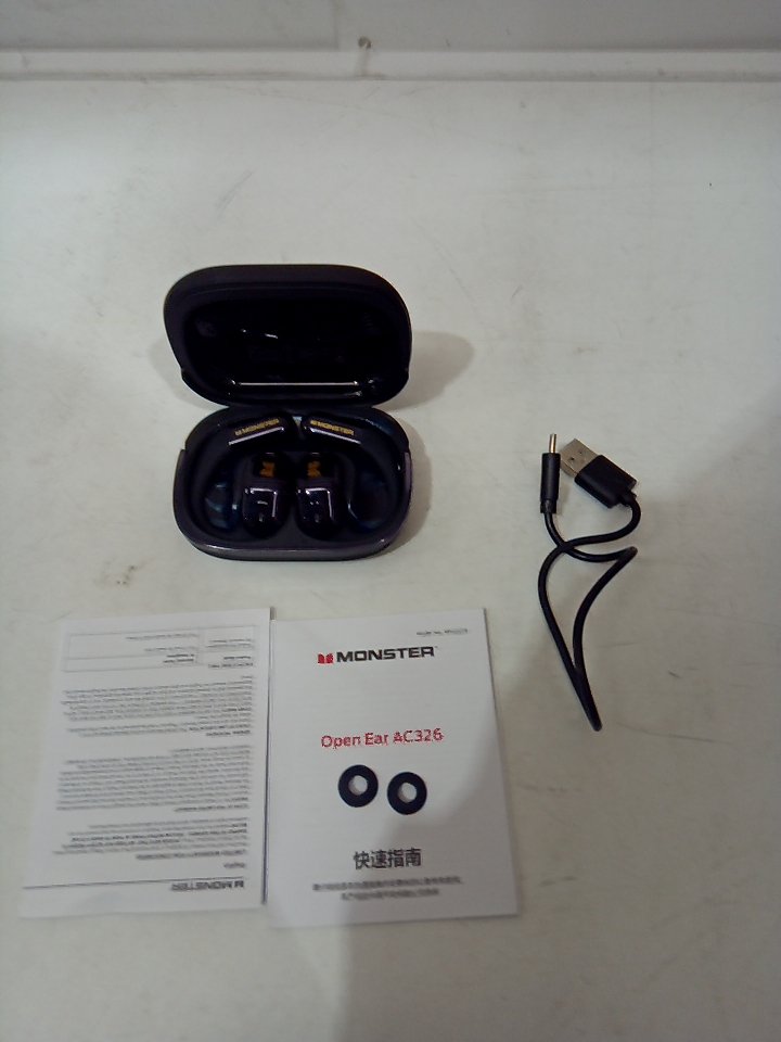 Monster Wireless Open Ear Headphones with Dual-Mic Clear Calls, Spatial Audio, 35H Playtime - black - (model:ac326)