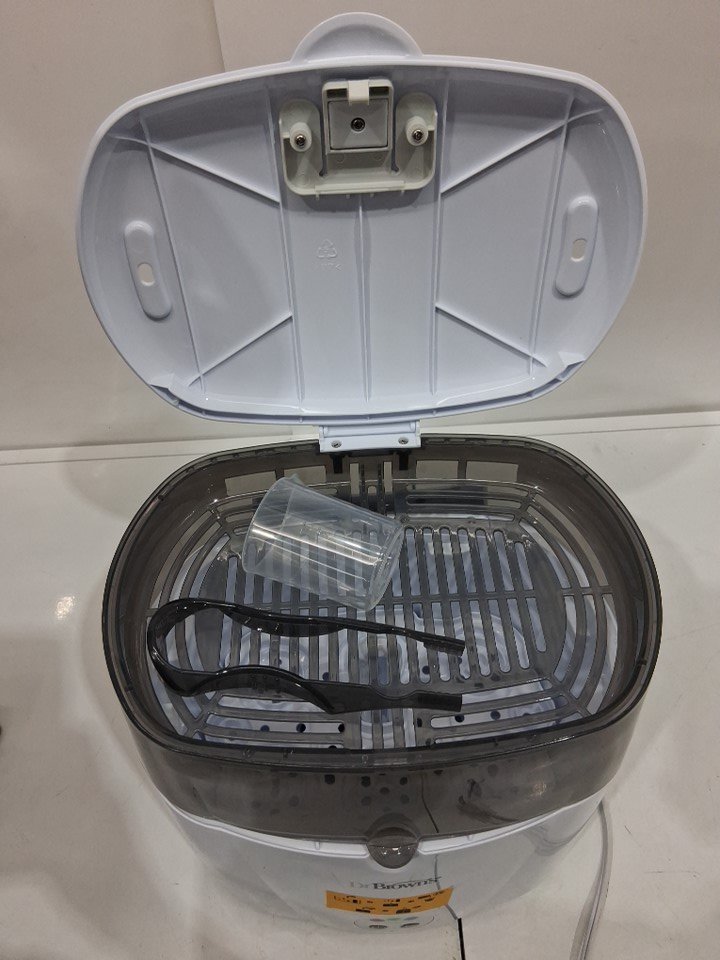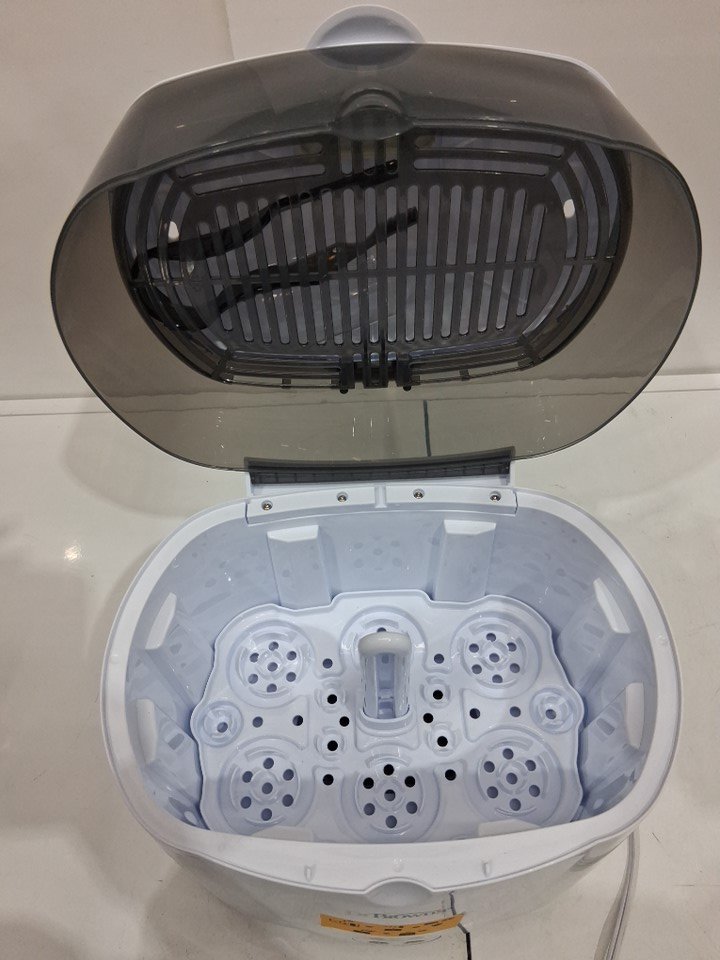 Item has mild sticker residue on surface of lid. Item tested for power.