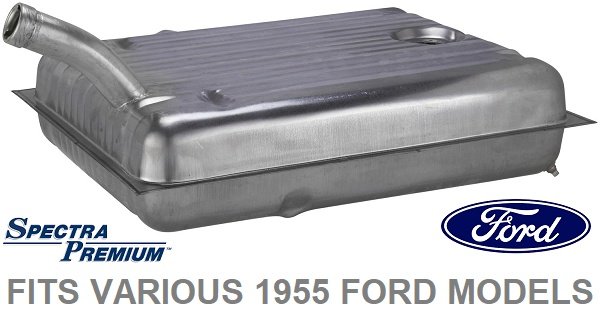 spectra premium classic fuel tank with filler neck and drain plug - compatible with various 1955 Ford models - silver (model: f31c)