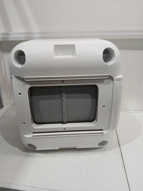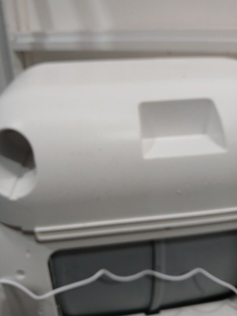 The legs and bottom collection pan are missing, and there is a significant amount of litter on the product. Tested for power only.