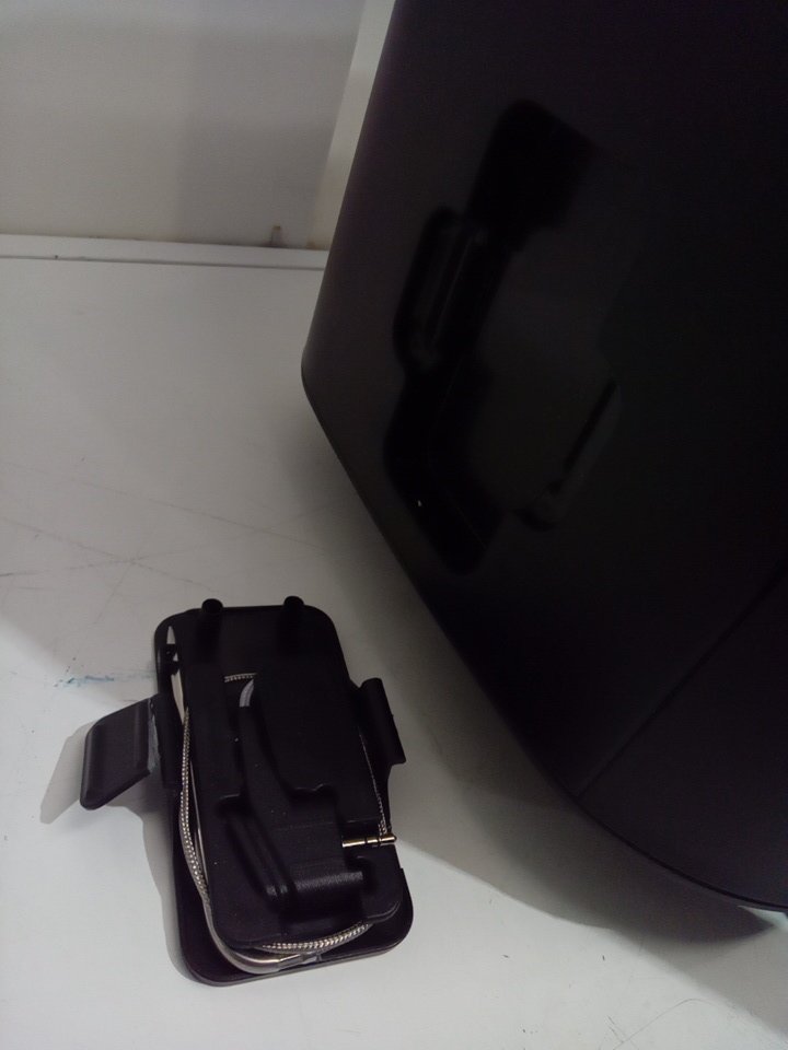 tested for power. appears that the left air fry basket has come scratches on the front of it. The thermometer on the left side appears to have been broken off (see photo)